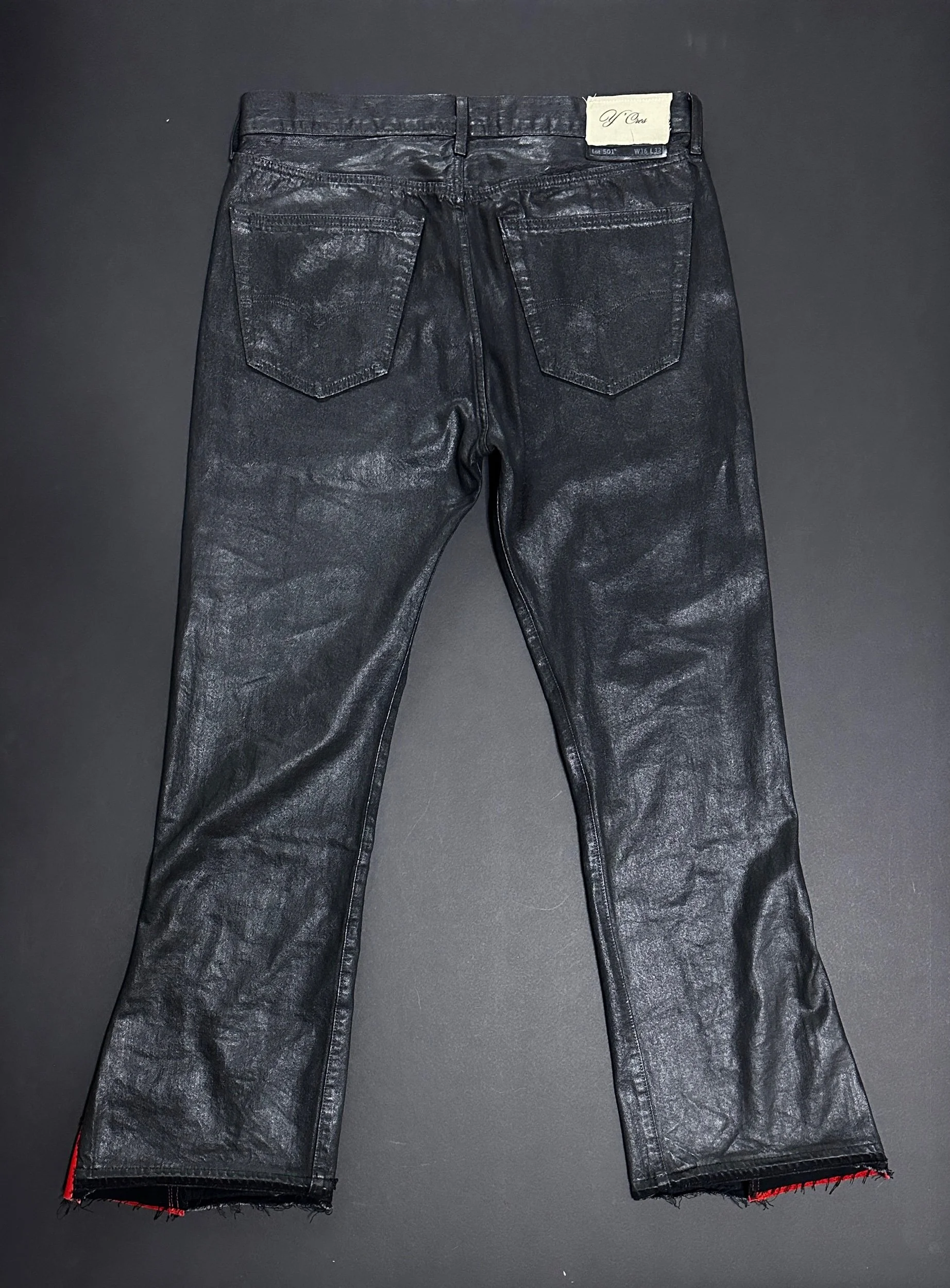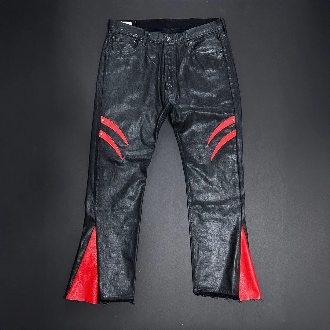 Utilizes heavyweight denim from Levi’s Premium line. Reinforced seams. Raw edge detailing.