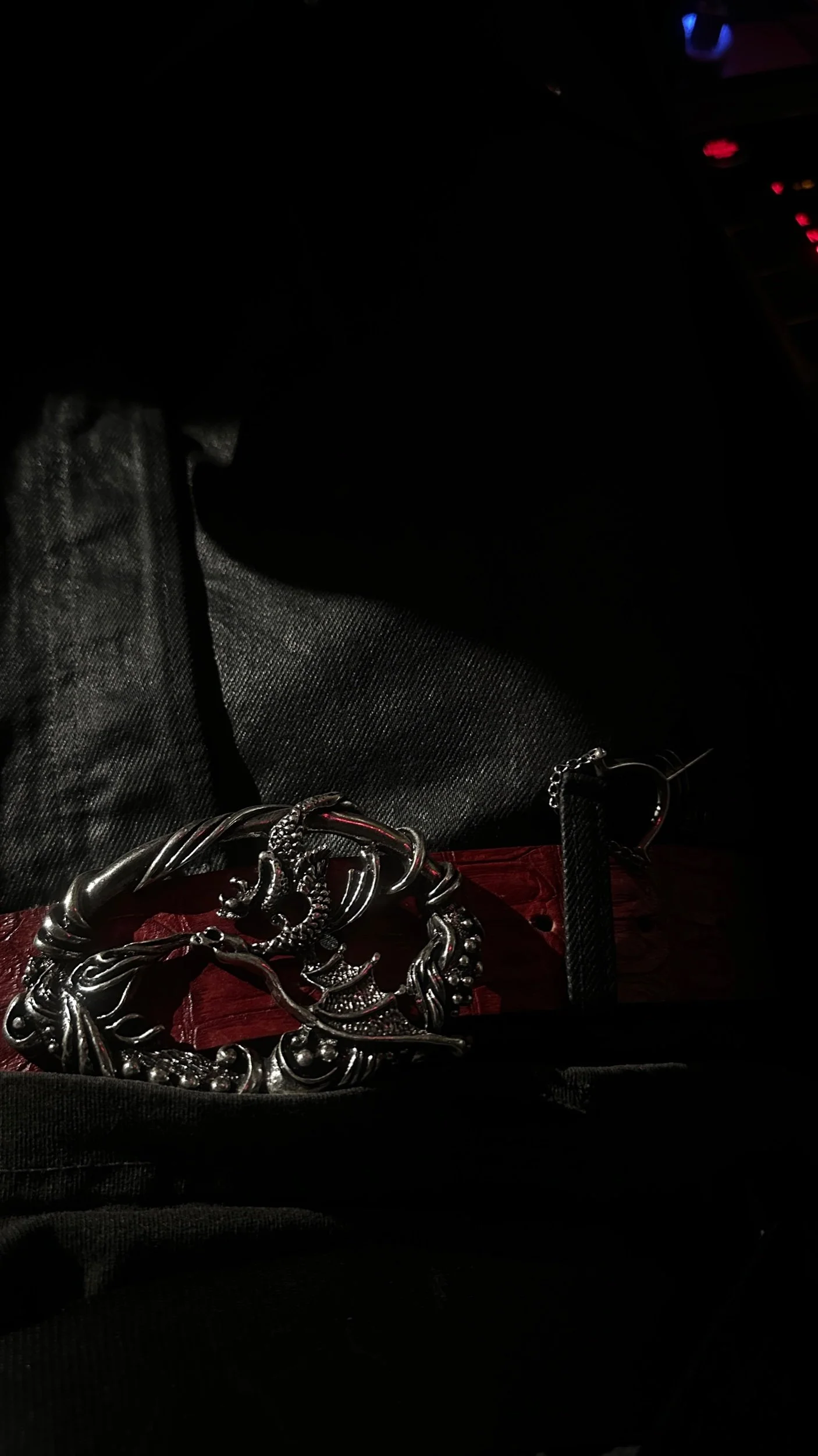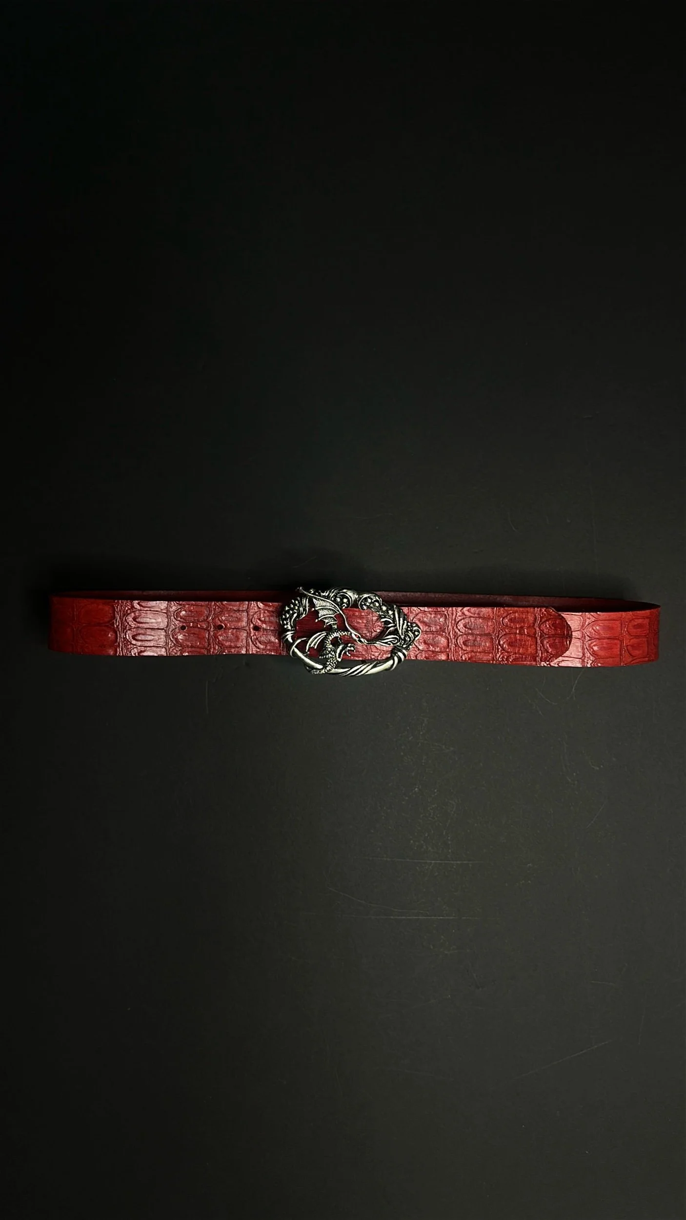 Red scale textured belt